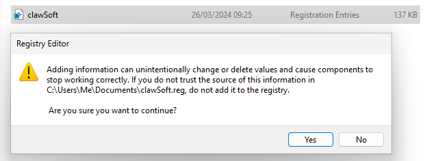 click Yes to load the file into registry.
